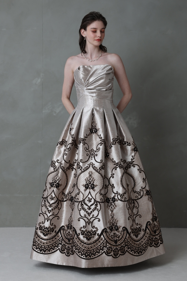 女性をより美しく見せるパターンとデザインにこだわり、着用したときの安心感、喜び、感動を少しでも感じていただけるよう一着ずつ心をこめてお作りしているエメのステージドレス。オリジナルだからこそ生地から製作するドレスも多く、模様、輝き、カラー展開など、他では出会うことのできないロングドレスばかりです。すべての女性に輝きと美しさをお届けしたいという願いを込めて発表されるシーズンごとの新作コレクションを、ぜひご覧ください。
