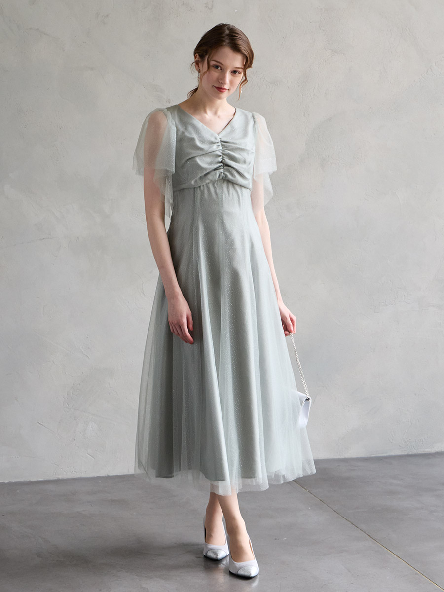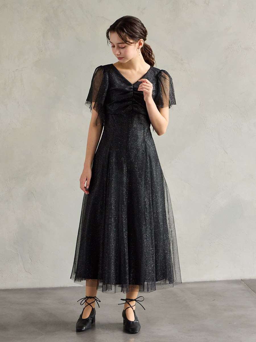 グリッターチュールのきらめきが華やかなドレス。