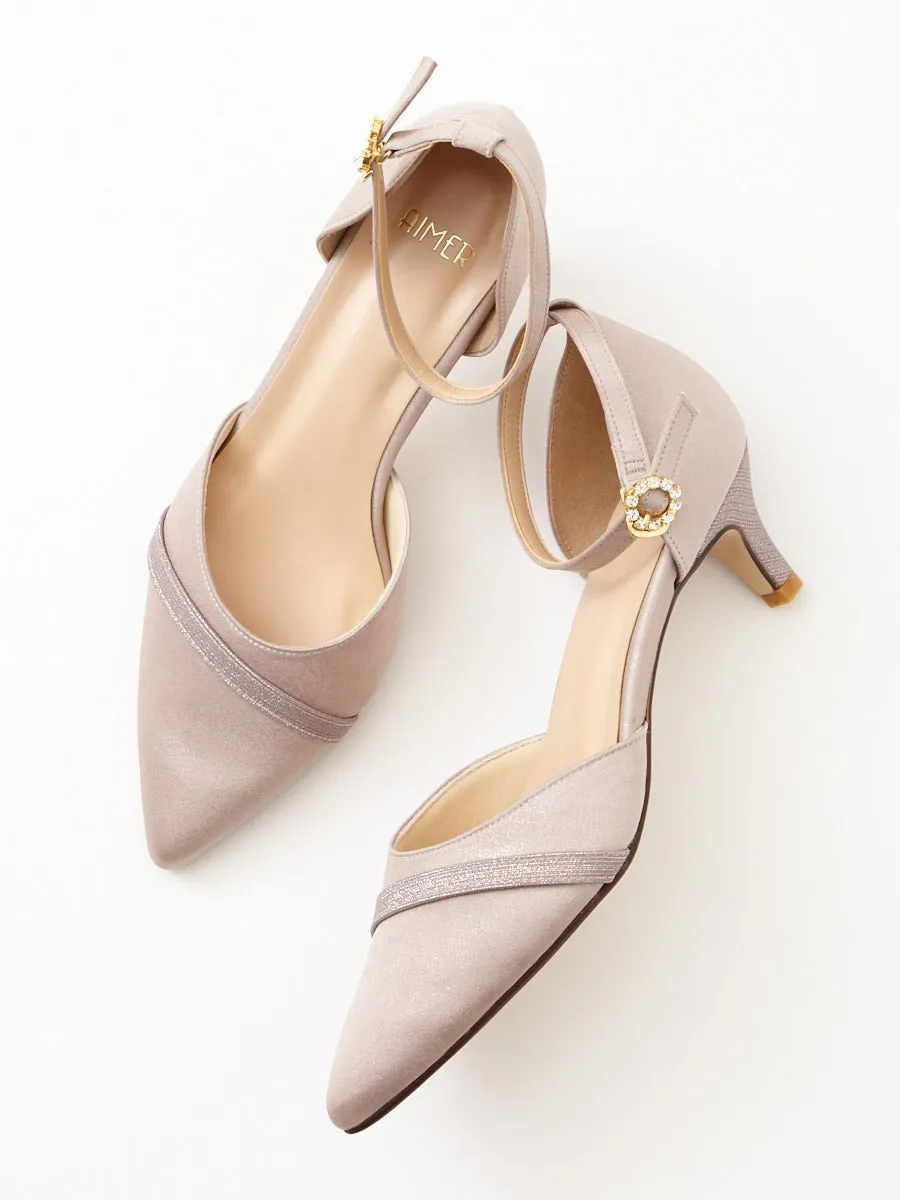 ビジューモチーフの金具とラメジョーゼットが華やかなセパレートパンプス