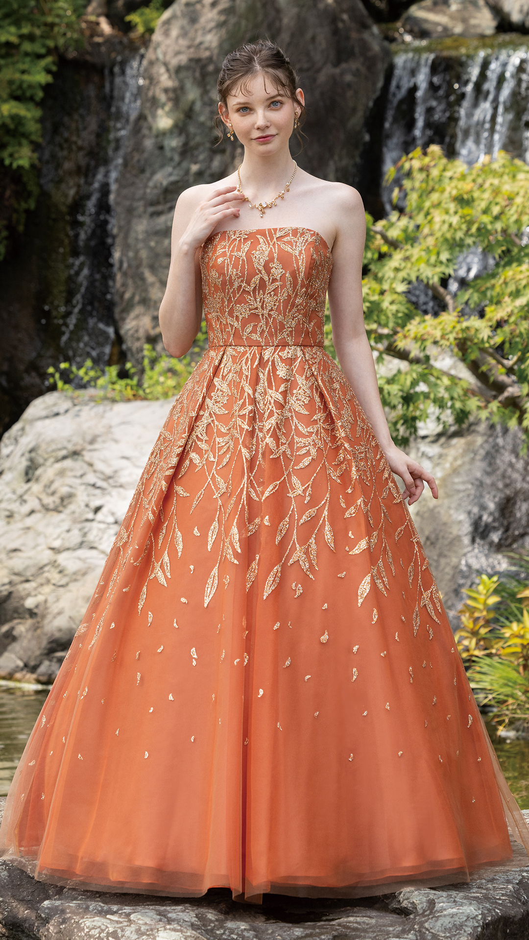 美しいフォルムと深みのあるブラウンのカラー。優雅で気品あふれるバイオリンは憧れの楽器。 誰もが知っている楽器だからこそその存在感に負けない最高のドレスを…