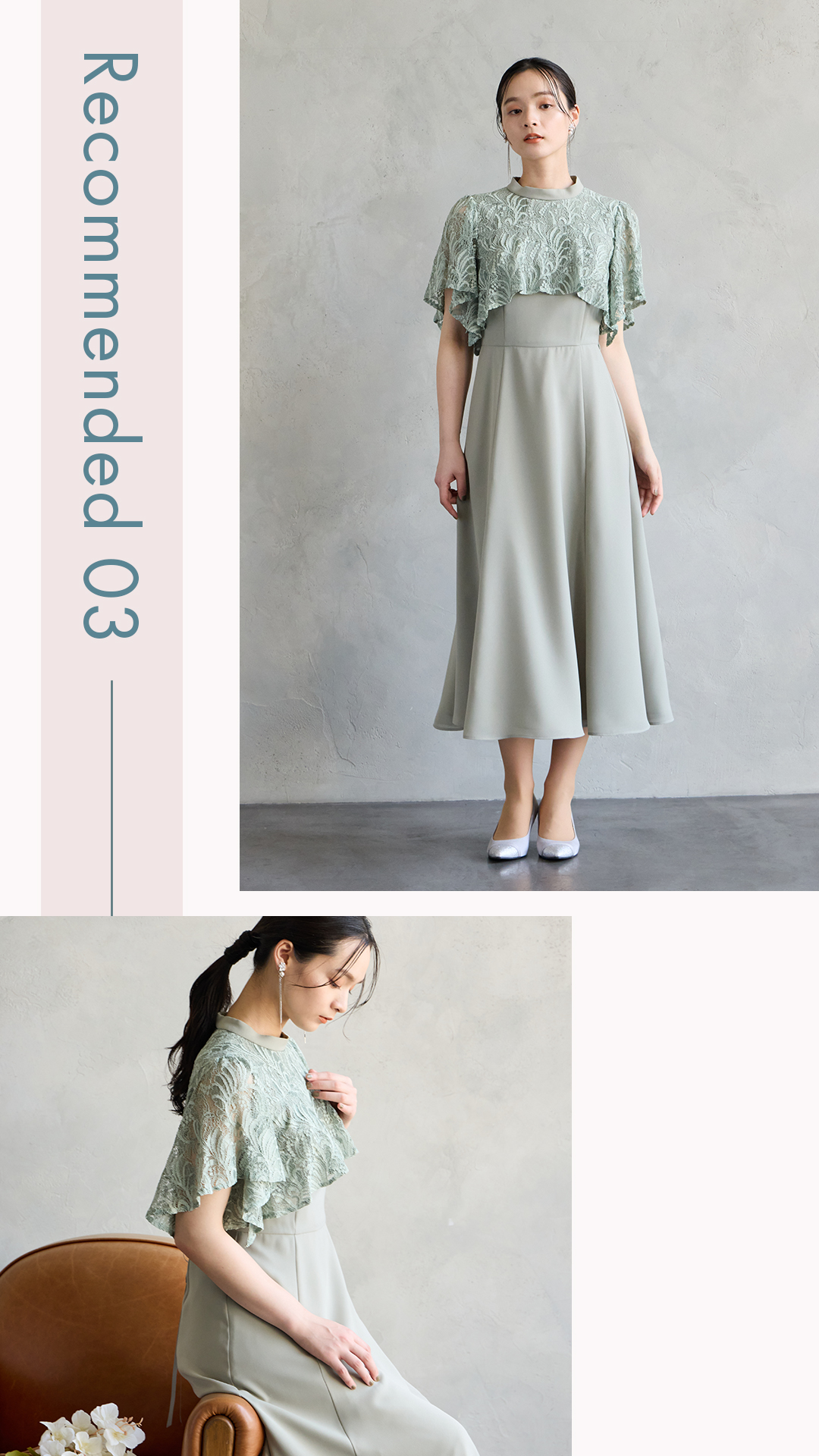 レースケープ風スリーブフィット&フレアドレス>>